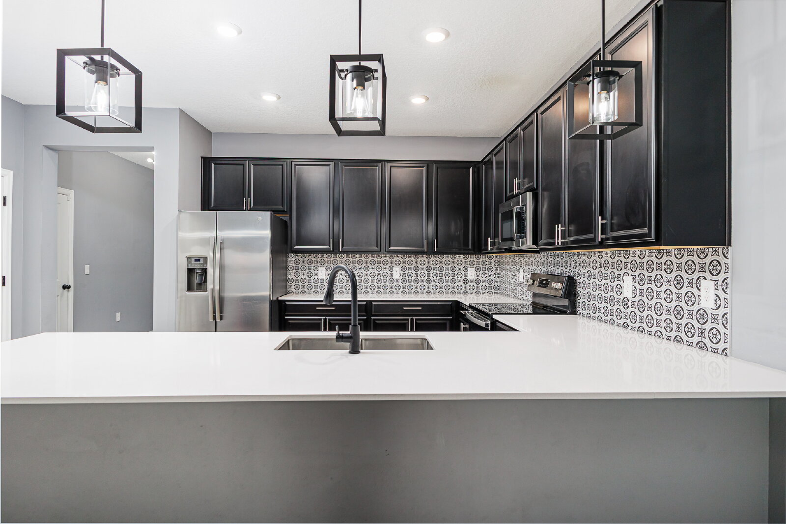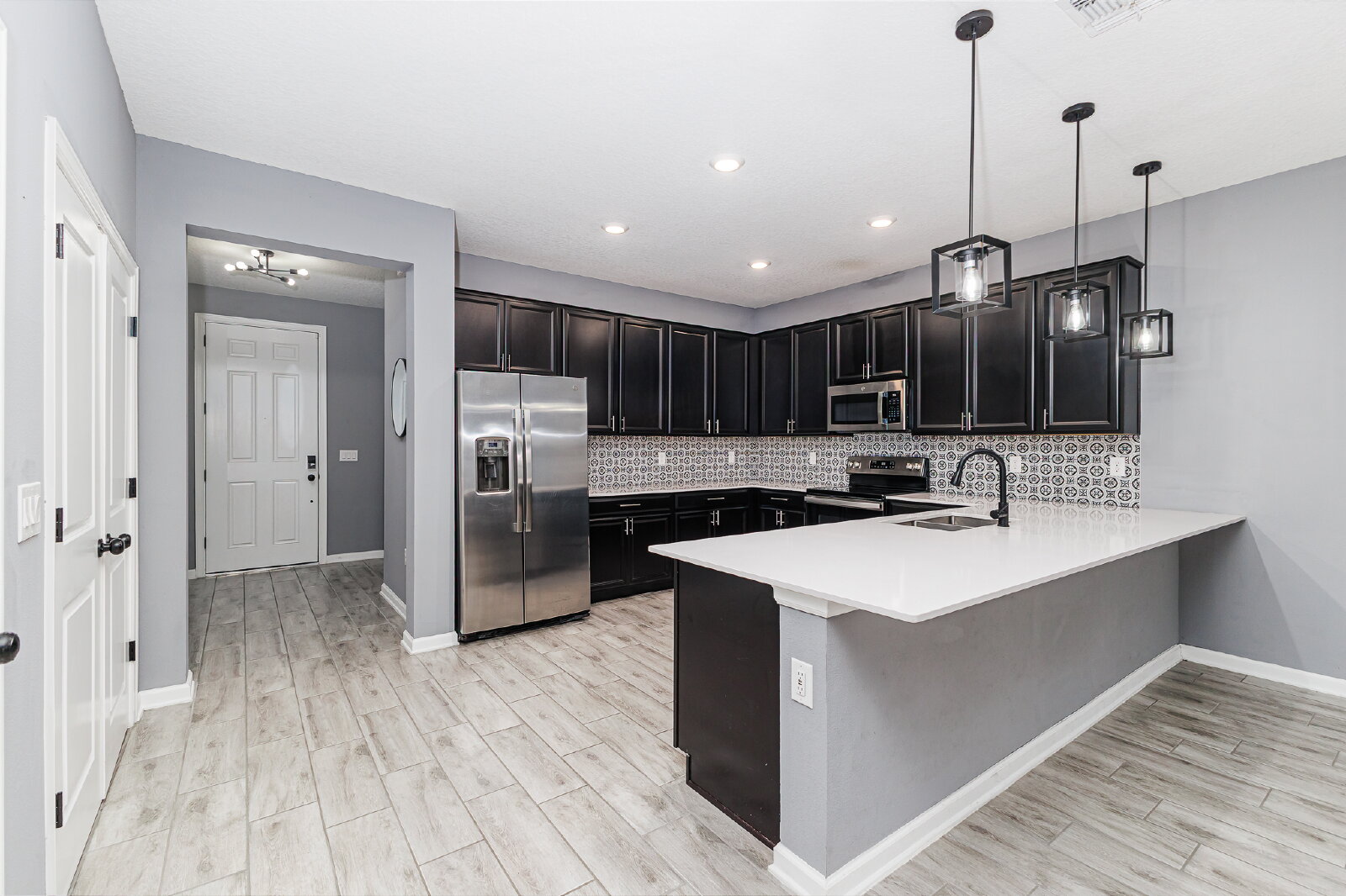 Inside the main home, you’ll find a bright, open floor plan with soaring ceilings and abundant natural light. The kitchen is finished with stone countertops, stainless steel appliances, and generous prep and gathering space. The primary suite provides a comfortable retreat with a spacious bath, updated finishes and ample storage.